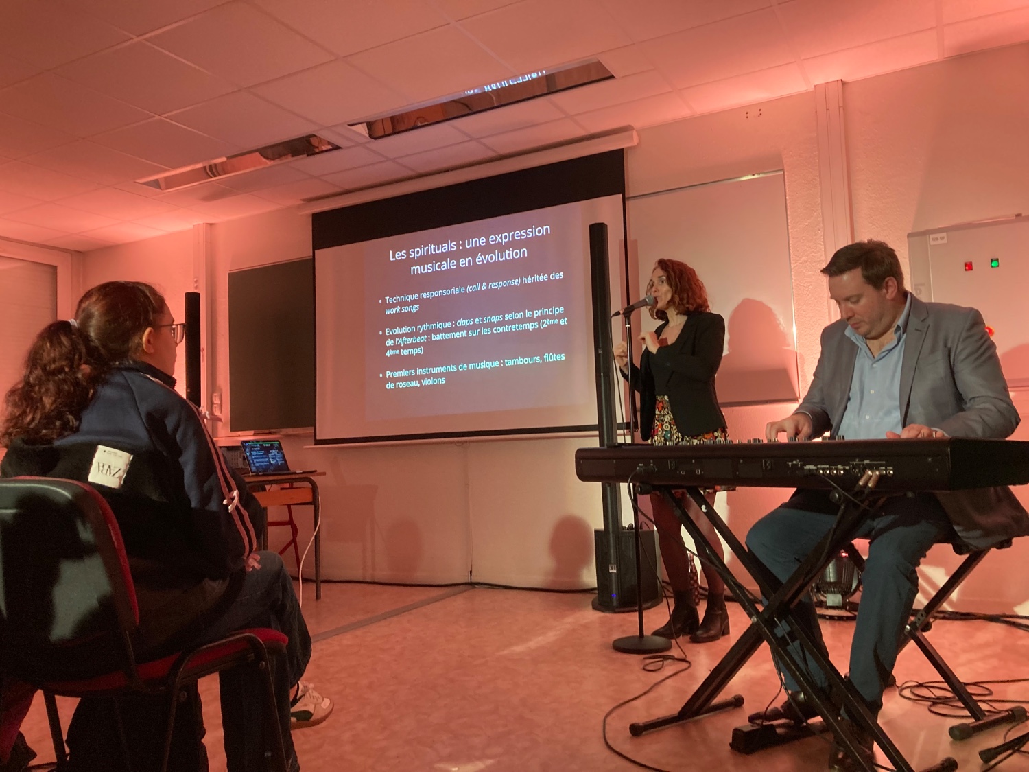 Dans le cadre du programme de 4e, les élèves ont exploré les origines de la musique afro-américaine lors d’une intervention du duo de musiciens Blue Boca.